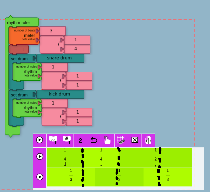 Code exported from the PTM may then be used in larger coding projects in Music Blocks.
