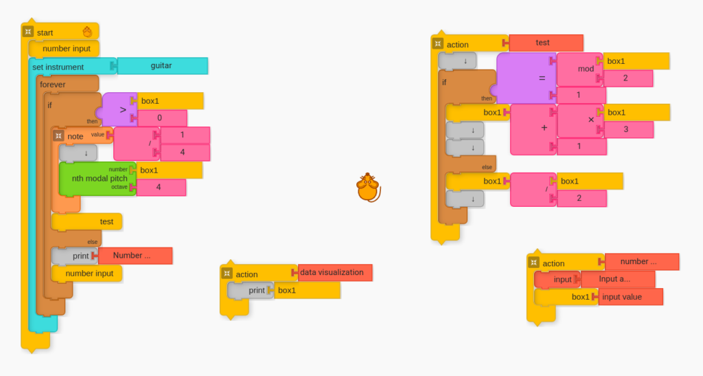 I found it to be very fun to attempt to express an interesting mathematical idea with Music Blocks. The Collatz Conjecture is a novel problem still awaiting a solution. (In fact, since Music Blocks–and the entire idea of “coding music”–is so new there are many unsolved problems waiting for students and teachers to solve.)