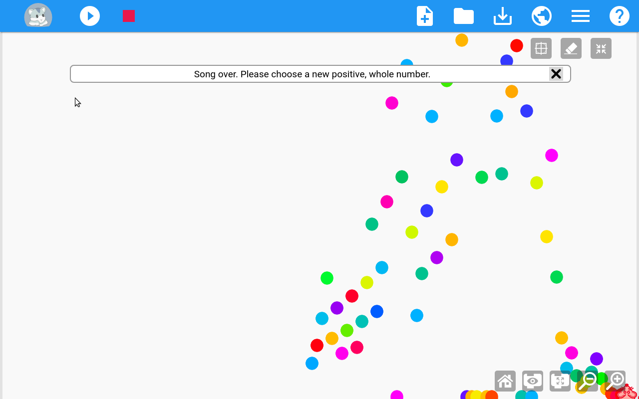 I went ahead and made a remix to Kite’s remix. Check it out at https://musicblocks.sugarlabs.org/index.html?id=1631720223522003&run=True | It has some checks for very high and low numbers, as well as scrolling the canvas over time so that you can see the order of the pitches over time.