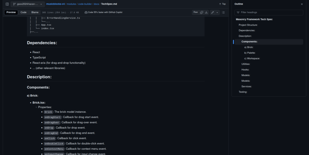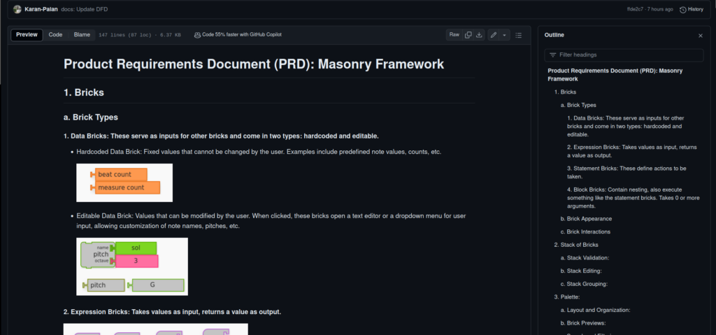 During the community bonding period, I focused on writing and refining the Product Requirements Document (PRD) for the Masonry framework in Musicblocks v4. The PRD includes all design decisions and specifications crucial for the project.