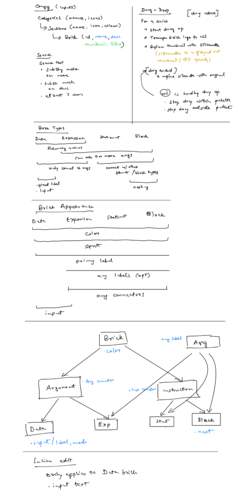 It is a graphical blocks manager module used to create Music Blocks programs, including interactive blocks like Start, Rhythm, Note, Pitch, Instrument, and many more. These blocks can be dragged, dropped, and clicked to perform actions . By implementing the Masonry end-to-end, users will be able to create different musical patterns seamlessly. This is how it looks in the current Music Blocks (v3) :