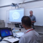 During the scheduled afternoon meeting with the entire team, Walter pointed out that more time should be given during the workshop to let the teachers try the software themselves. He told everyone, “You learn through doing, so if you want more learning, you need more doing” (Translated into Japanese by Devin as 人は「する」ことで学びます。ですから、「学ぶ」ことが目的だったら「する」ことは必要なんです。) Walter and Devin opted to cut their scheduled 15 minute self-introduction for the following day to 2 minutes each to give more time to the teachers to explore Music Blocks.